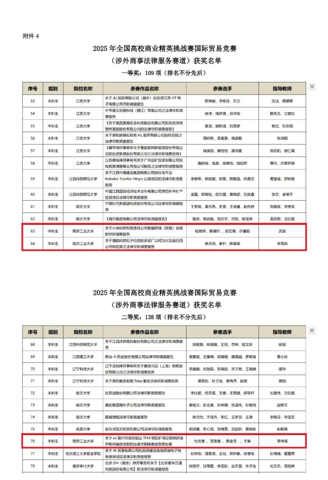近日,全国高校商业精英挑战赛(国家级 B 类赛事)国际贸易竞赛结果正式公布,在江苏百闻律师事务所(以下简称“百闻所”)的专业指导下,南京工业大学三组参赛团队表现亮眼,成功斩获 2 项一等奖、1 项二等奖的优异成绩,充分展现了产教融合培养模式的实践成效。作为南京工业大学深度合作的法律实务伙伴,百闻所通过 “百闻班”、“百闻讲坛”、校级产教融合课程及实践基地共建等多元形式,持续为高校人才培养注入实务力量。