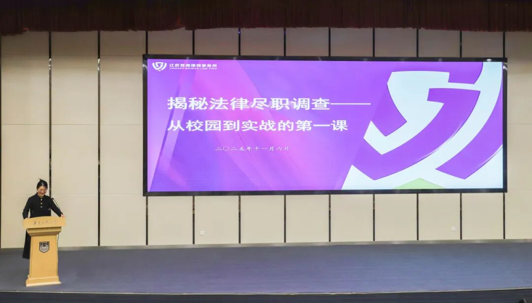 2025 年 11 月 6 日,江苏百闻律师事务所应南京工业大学法政学院邀请,成功开展第八期百闻讲坛活动,本期以 “揭秘法律尽职调查 —— 从校园到实战的第一课” 为主题,由风险管理业务部姜娟娟主讲,为现场师生带来一场干货满满的实务盛宴。