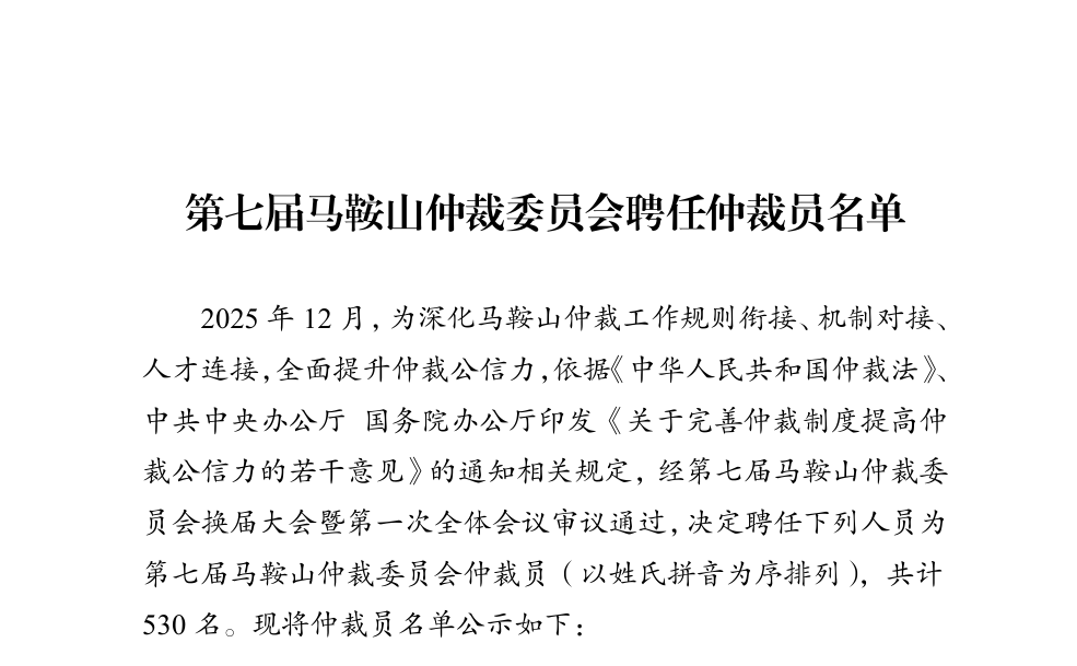 近日,第七届马鞍山仲裁委员会换届大会暨第一次全体会议审议通过了新一届仲裁员聘任名单,江苏百闻律师事务所主任徐小兵连任第七届马鞍山仲裁委员会仲裁员。