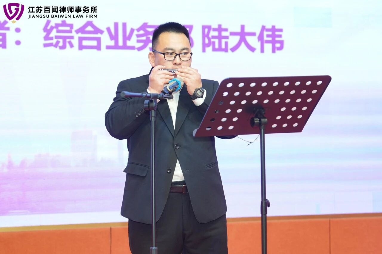 合唱《百闻之路》唱响律政初心,尽显百闻团队专业奋进风采;感人朗诵《在冬天的麦苗上,看到了中国的春天》《致并肩作战的我们》字字铿锵,道出了百闻人携手同行的初心与担当;唱跳《饿狼传说》燃炸全场,舞蹈《青花瓷》雅致婉约,独唱《四点的海棠花未眠》深情动人,舞蹈《高雅人士舞》爆笑开怀,创意节目《体验百闻仪式感》趣味十足,赢得阵阵掌声。最后,全员合唱《难忘今宵》,熟悉的旋律萦绕耳畔,将晚会气氛推向高潮。