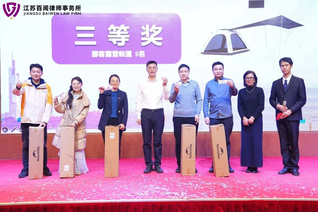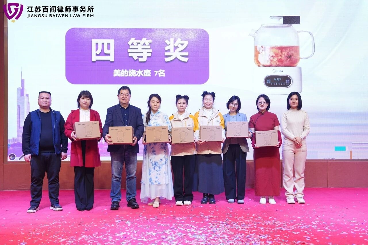激动人心的抽奖环节无疑是晚会的 “欢乐重头戏”!特等奖、一等奖、二等奖、三等奖、四等奖一一揭晓,随着主持人一次次喊出幸运号码,现场欢呼声、尖叫声不断。每一份奖品都承载着律所对家人们的真挚关怀与美好祝愿,幸运儿们满载而归。最后未中奖的伙伴也有红包大奖,将好运与喜悦传递给了在场的每一个人。