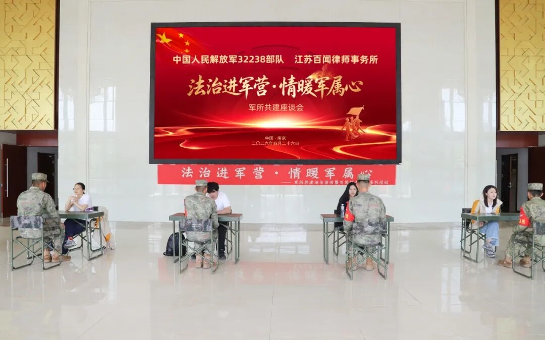 2026年4月26日,江苏百闻律师事务所(以下简称“百闻所”)迎来成立七周年。为深化军所法治协作、弘扬律所文化、凝聚团队力量,百闻所与中国人民解放军32238部队联合开展 “法治进军营・情暖军属心” 军所共建法治宣传暨七周年系列活动 ,百闻人以一场兼具国防教育、公益普法、红色研学的主题实践,献礼七周年。